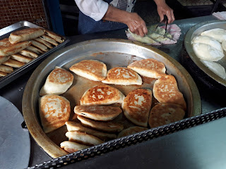 早安蔥油餅 中和 Google Map上推薦我這家店。周末早上沒多想,就跑來吃看看。來之前只看了幾則評論,還有一兩篇食記。 到了現場看到居然要排隊,讓我嚇一跳,心想吃個蔥油餅而已,是有多厲害啦?於是乖乖跟著隊伍前進,雖然排隊的人不少,但消化的速度算快,店家的人手充足,手腳也俐落,因此應該都不會等太久。 等到我看了鍋中的成品之後,就覺得這趟算是不值了。哈哈。買了韭菜盒和蛋餅,邊刻意繞一段路走進傳統市場,往停車點前邊吃著。那辣椒就真的很糟,市售那種很鹹不辣的。蔥油餅不算太油,但太軟趴,吃起來口感有點弱沒嚼勁。我想是因為分量很扎實充足,在市場門口走著實惠的路線,適合上市場購物婆媽們的習性,累積了大量的客群。住在一百米之內的去吃就算了,跑過去買真的很沒有必要。但以30元一份餅來說,真的很便宜了!這價格在以低價取勝的木柵都找不到。